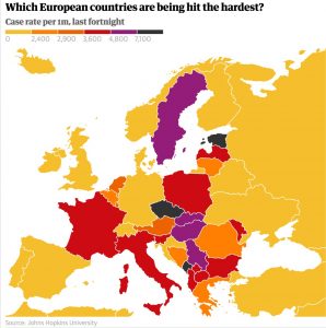 Europe is struggling to speed up its vaccine rollout after delivery delays from Pfizer and AstraZeneca, even as a spike in cases amid a more contagious virus variant has triggered fresh lockdowns in countries like Italy and France.