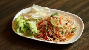 As you descend down each step to the basement restaurant, chatter and music grows louder. When you finally reach the 150-seat restaurant, you’ll be hit with the potent aroma of Thai soups, skewers and desserts while the songs of Ronan Keating, Celine Dion and Whitney Houston play in the background. The music may be Western, but the food is bona fide Thai. Most dishes are inspired by Isan cuisine, but the vast menu showcases flavours and plates from all over Thailand.