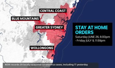 The NSW government has announced a two-week lockdown for Greater Sydney including Wollongong, Blue Mountains, Central Coast and Shellharbour after the case numbers linked to the...