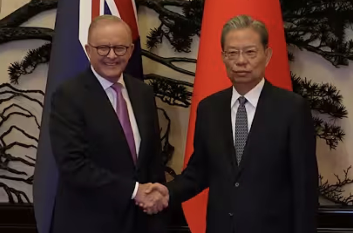 Zhao first arrived in Brisbane, visiting energy companies and a koala conservation center, before arriving in Canberra on Monday for Parliament-related engagements. Upon arrival at the local air force base, he was greeted by crowds waving Chinese flags. However, outside Parliament, groups including Tibetans, Uyghurs, and Falun Gong practitioners gathered to protest against his visit.